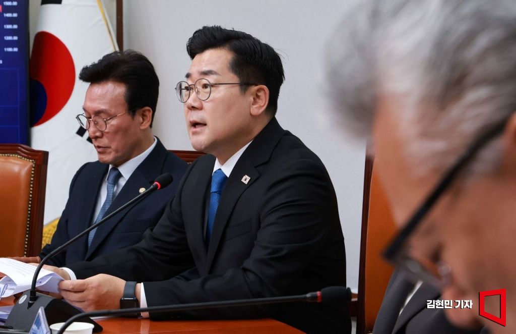 박찬대 더불어민주당 당대표 직무대행 겸 원내대표가 14일 국회에서 열린 최고위원회의에서 발언하고 있다.
