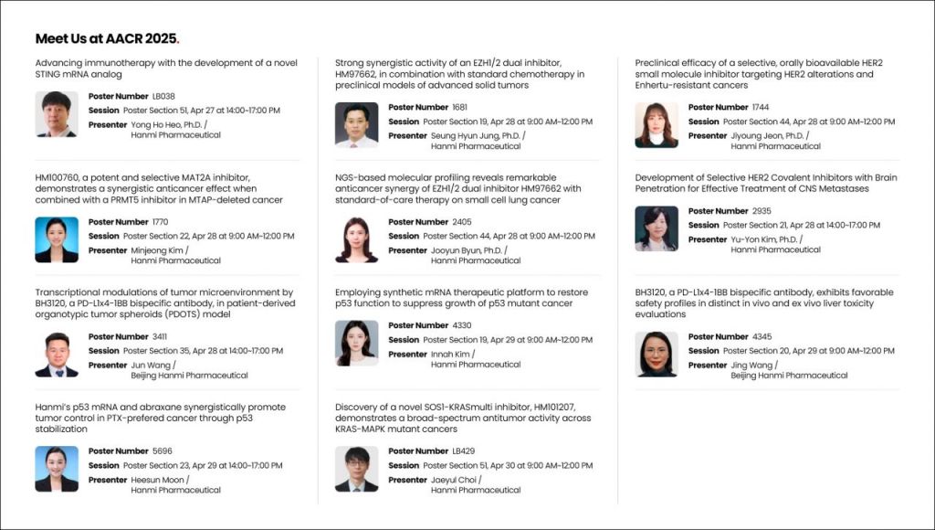 한미약품이 미국암연구학회(AACR 2025)에서 국내 제약바이오 업계 최다 건수인 11건의 비임상 연구 결과를 공개한다.