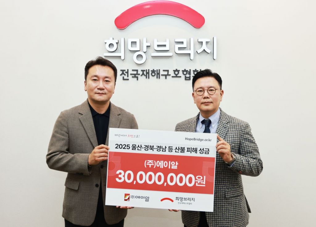 14일에는 ㈜에이알(대표 한영모)이 성금 3000만원을 기부했다. ㈜에이알은 국가적 재난 상황에서 지역사회를 위한 역할을 다하는 것이 기업의 책무라는 판단 아래, 실질적인 도움이 될 수 있는 복구 지원에 뜻을 모았다. 한영모 ㈜에이알 대표는 "갑작스러운 산불로 삶의 터전을 잃은 분들의 아픔에 공감하고, 산불 진화에 앞장선 소방관 여러분의 노고에도 감사드린다"며 "작은 정성이지만 피해 이웃들에게 힘이 되기를 바란다. 앞으로도 에이알은 사회적 책임을 실천하는 기업이 되도록 노력하겠다"고 덧붙였다.