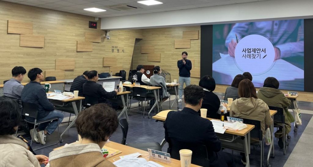 광명시 관계자가 주민참여예산위원들을 대상으로 시민강사단 양성과정과 프레젠테이션 기법 등을 교육하고 있다. 광명시 제공