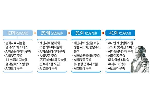 법원이 160억 원의 예산을 들여 행위시법(처벌 규정)을 제시하고 사건의 쟁점을 정리해 법관들에게 제시하는 기능을 담은 자체 인공지능(AI) 모델을 2028년까지 개발한다. 개발이 완성되고 실무에 적용되기 시작하면 재판 지연 문제를 해소하는 데 도움이 될 것으로 예상된다.