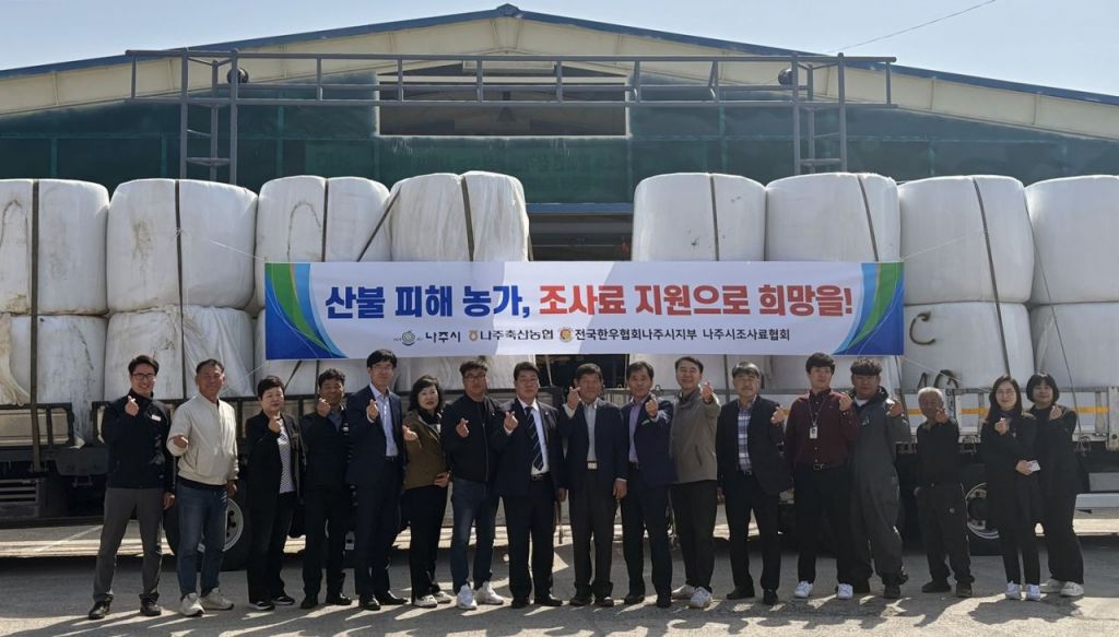 전남 나주시 축산단체들이 경북지역 산불 피해 축산농가에 가축 먹이인 조사료를 지원하고 나섰다. 이달 초 3,000만원 상당 식품(누룽지 등) 지원에 이은 구호 활동으로 이재민들에게 희망의 손길을 전했다.