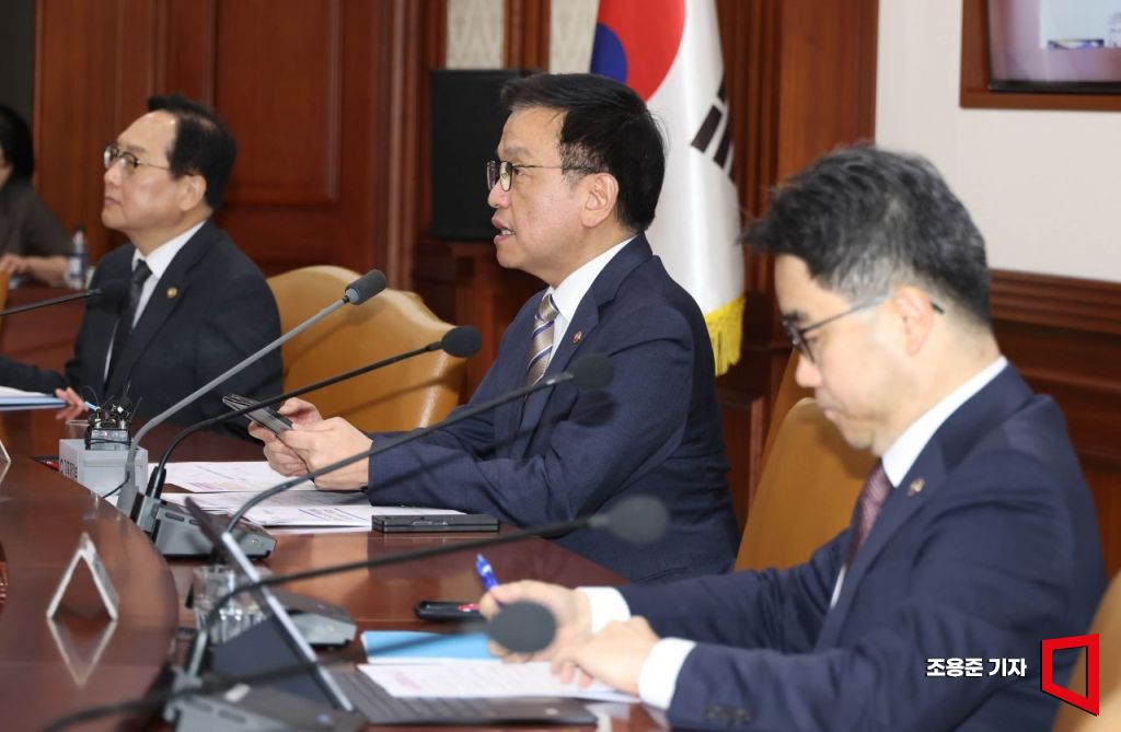 최상목 경제부총리 겸 기획재정부 장관이 15일 서울 종로구 정부서울청사에서 열린 경제관계장관회의 겸 산업경쟁력강화 관계장관회의에 참석, 미 관세부과 조치에 따른 대응 방안, 추경 등에 대해 발언하고 있다.