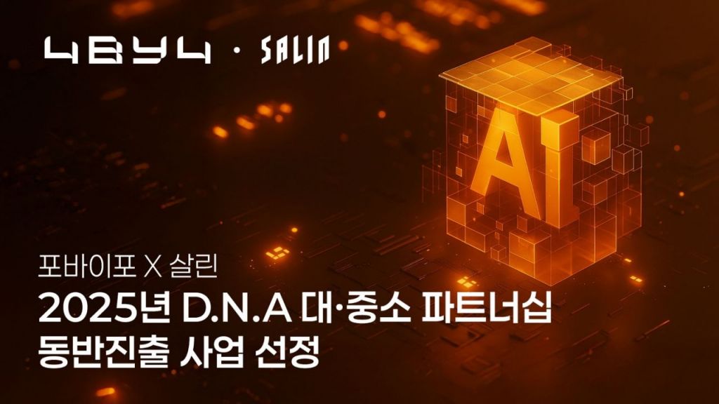 콘텐츠 인공지능(AI) 솔루션 업체 포바이포는 디지털 마케팅 플랫폼 업체 살린과 함께 참여한 컨소시엄이 '2025년 D.N.A. 대·중소 파트너십 동반진출 사업'에 선정됐다고 15일 밝혔다.