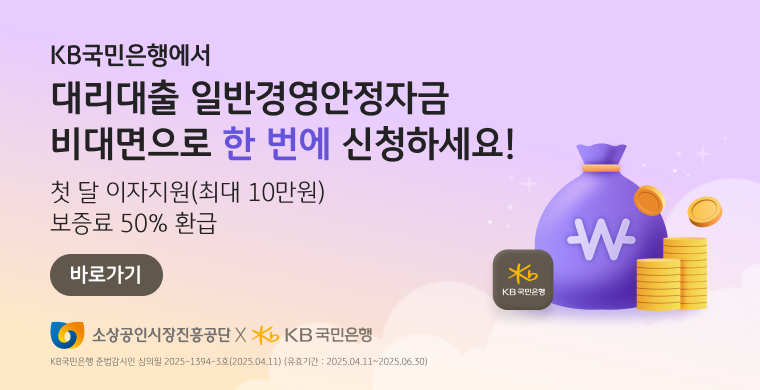 또한, 국민은행은 상생금융 일환으로 '비대면 대리대출 서비스'를 통해 소상공인 정책자금 대리대출을 진행한 소상공인에게 첫 달 이자 지원과 보증료 환급 행사도 함께 진행한다.