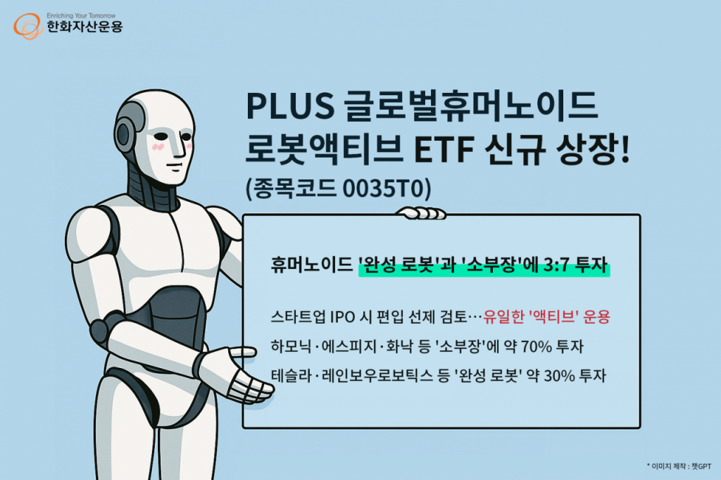 한화자산운용은 휴머노이드 로봇 산업의 성장성에 투자할 수 있는 'PLUS글로벌휴머노이드로봇액티브' 상장지수펀드(ETF)를 상장한다고 15일 밝혔다.