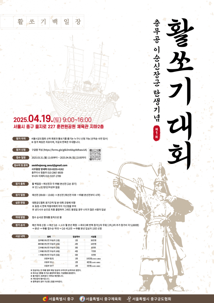 '제1회 충무공 이순신 장군 탄생기념 활쏘기 대회' 포스터. 서울 중구 제공.