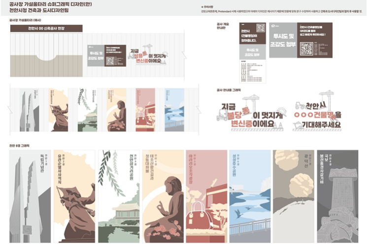 이 슈퍼 그래픽은 도시디자인팀 공무원들이 기획은 물론 디자인까지 직접 했으며, 공사 정보 안내와 천안 8경 이미지 등을 담아냈다.