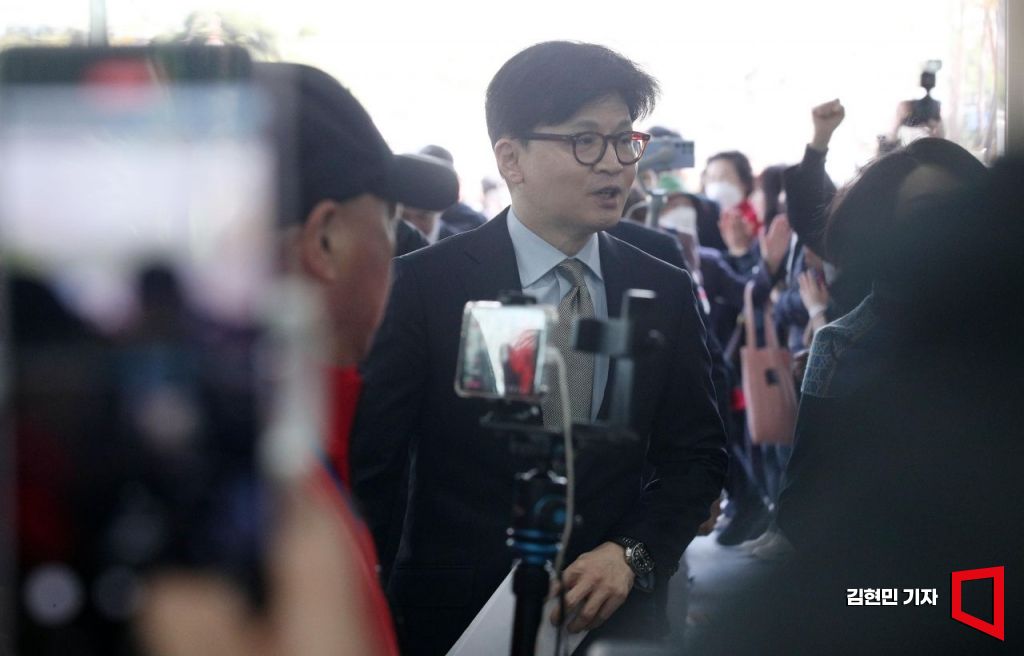 국민의힘 대선 경선 주자인 한동훈 전 대표가 15일 정책비전을 발표하기 위해 국회 소통관으로 들어서고 있다.