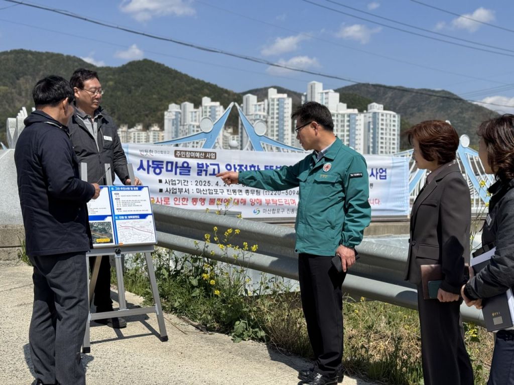 경남 창원특례시 마산합포구는 15일 진동면 사동마을에서 '사동마을 밝고 안전한 뚝방 플라워로드 조성' 사업 착공 현장을 방문해 추진상황을 점검하고 향후 계획을 논의했다.