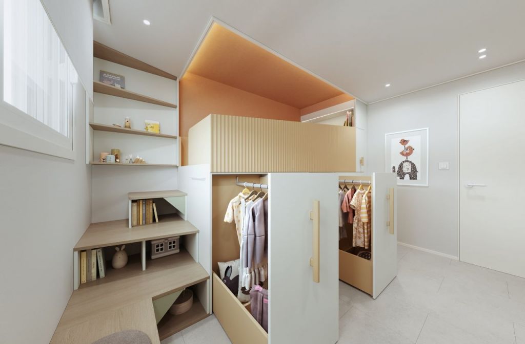 '미니도서관' 패키지의 경우 초등학생 자녀의 독서 습관을 길러주기 위해 도서관 같은 분위기의 미니 소파부스와 계단 책장, 히든 옷장 및 책상 그리고 벙커침대로 구성했고, 중·고등학생 자녀를 위한 '스터디카페' 패키지는 카페 벤치와 이동형 테이블, 슬라이딩 침대를 배치해 방안 이곳 저곳에서 자유롭게 학습할 수 있도록 꾸몄다. 성인 자녀를 위한 '뷰티&패션' 패키지는 드레스룸과 가방·화장품·액세서리 수납에 최적화된 수납 모듈을 강화한 게 핵심이다.