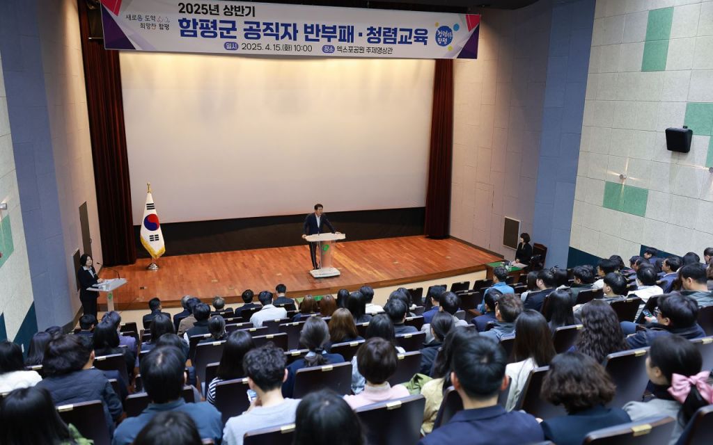 이날 오전 함평엑스포공원 주제영상관에서 진행된 2025년 상반기 반부패·청렴 교육은 군청 소속 공직자 300여 명이 참석했다.