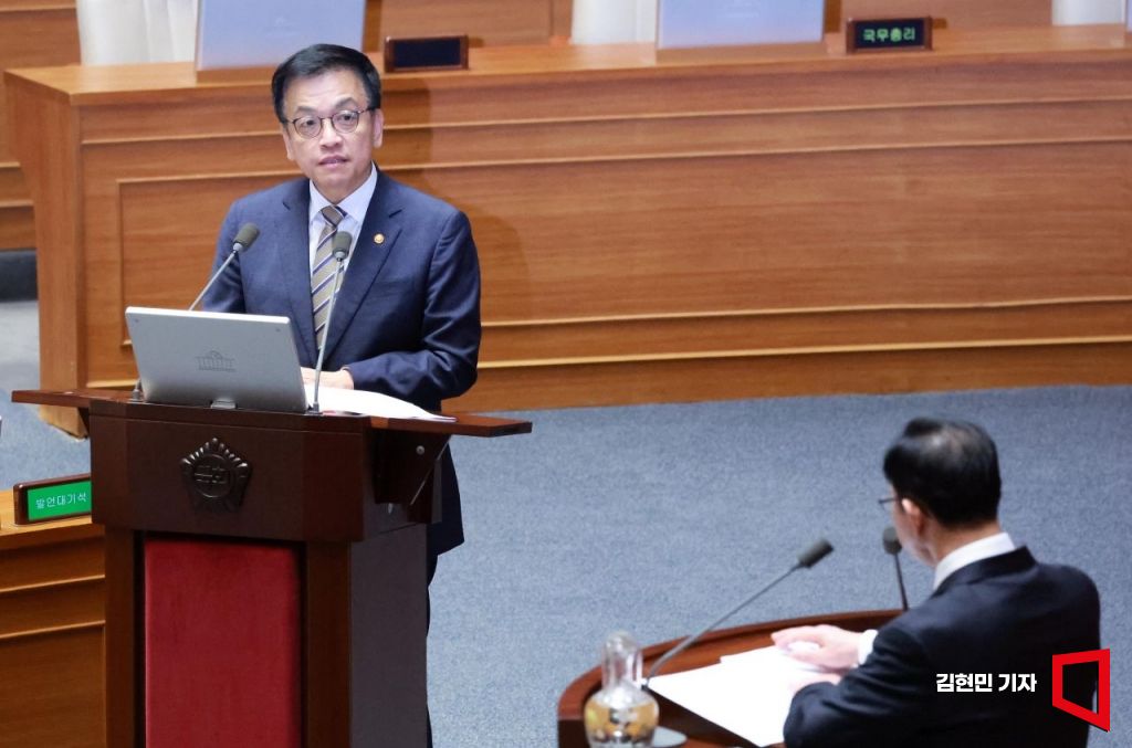 최상목 경제부총리 겸 기획재정부 장관이 15일 국회 본회의에서 열린 경제분야 대정부질문에서 의원질의에 답하고 있다.