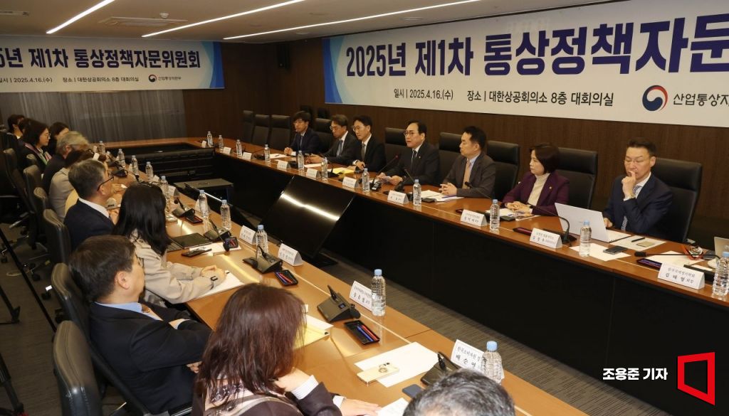 정인교 산업통상자원부 통상교섭본부장이 16일 서울 중구 대한상공회의소에서 열린 미 관세조치 대응 제1차 통상정책자문위원회에 참석, 발언하고 있다.