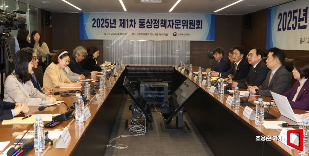 정인교 산업통상자원부 통상교섭본부장이 16일 서울 중구 대한상공회의소에서 열린 미 관세조치 대응 제1차 통상정책자문위원회에 참석, 발언하고 있다.