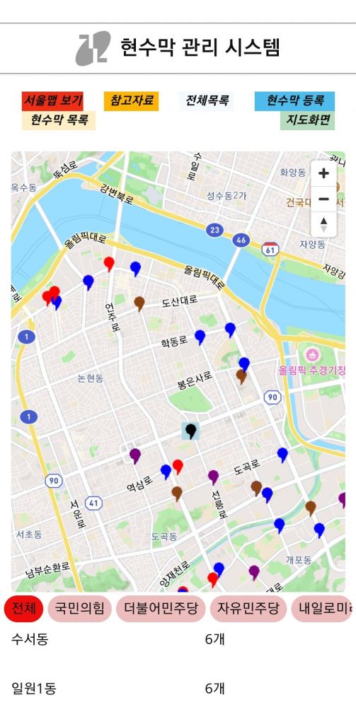 이에 담당 공무원이 아이디어를 내 자체적으로 '정당 현수막 실시간 관리 시스템'을 개발해 문제 해결에 나섰다. 이 시스템은 현장에서 휴대폰으로 간단히 접속해 현수막의 위치, 정당명, 설치 기간 등을 등록하면 실시간으로 데이터화돼 관리된다. 시스템은 설치 기한과 설치 개수 제한 여부를 자동으로 분석해 위반 여부를 즉시 파악하고, 필요시 바로 정비 조치할 수 있도록 돕는다.