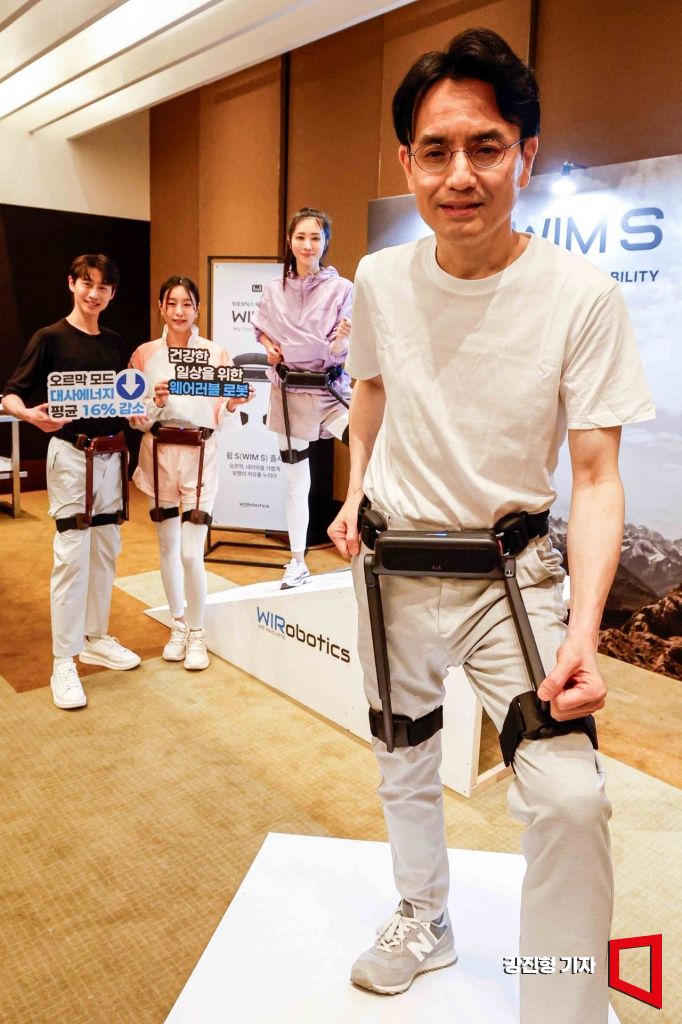 16일 서울 중구 그랜드 하얏트 호텔에서 홍보 모델들이 위로보틱스 웨어러블 로봇 'WIM S'를 착용하고 있다. CES에서 2년 연속 혁신상을 수상한 위로보틱스가 이번에 선보이는 WIM S는 초경량 인체공학 설계와 AI 기반 보행보조 기능을 통해 안정적이고 효율적인 이동을 돕는 보행보조 웨어러블 로봇이다.