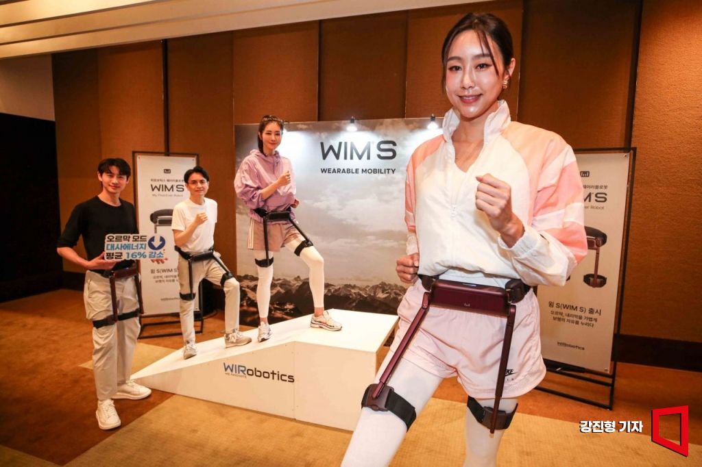 16일 서울 중구 그랜드 하얏트 호텔에서 홍보 모델들이 위로보틱스 웨어러블 로봇 'WIM S'를 착용하고 있다. CES에서 2년 연속 혁신상을 수상한 위로보틱스가 이번에 선보이는 WIM S는 초경량 인체공학 설계와 AI 기반 보행보조 기능을 통해 안정적이고 효율적인 이동을 돕는 보행보조 웨어러블 로봇이다.