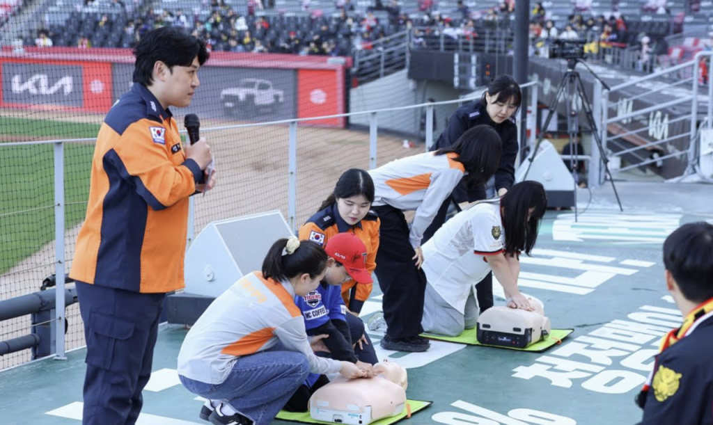 호남대학교 소방행정학과 대학생전문의용소방대가 기아타이거즈 챔피언스필드에서 광주소방안전본부 관할 4개 소방서 대원들과 합동으로 관람객들에게 심폐소생술 시연과 함께 교육을 실시했다. 호남대학교 제공