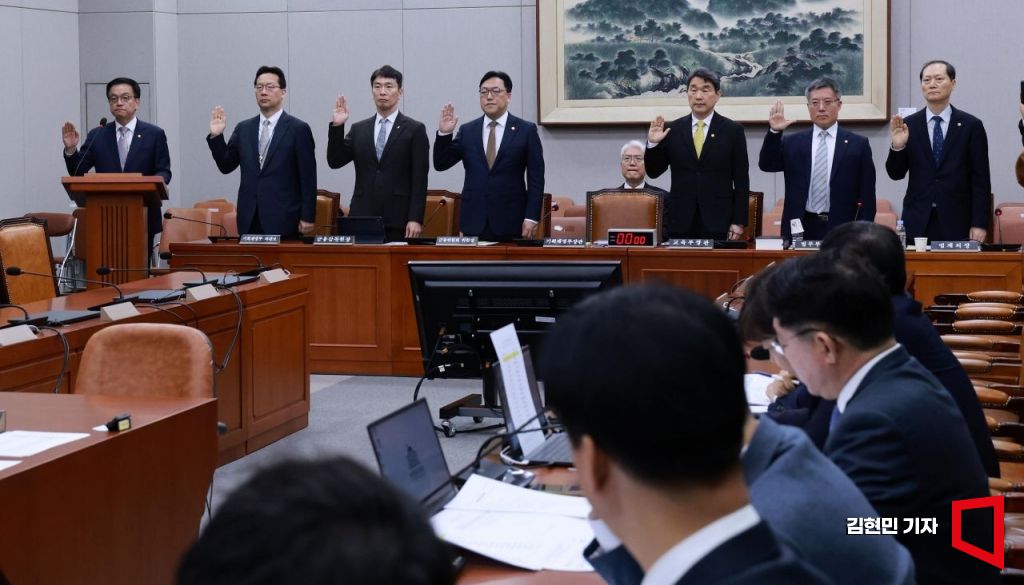 최상목 부총리 겸 기획재정부 장관이 16일 국회 법제사법위원회에서 열린 '기획재정부 장관 최상목 탄핵소추사건 조사' 청문회에서 선서하고 있다.
