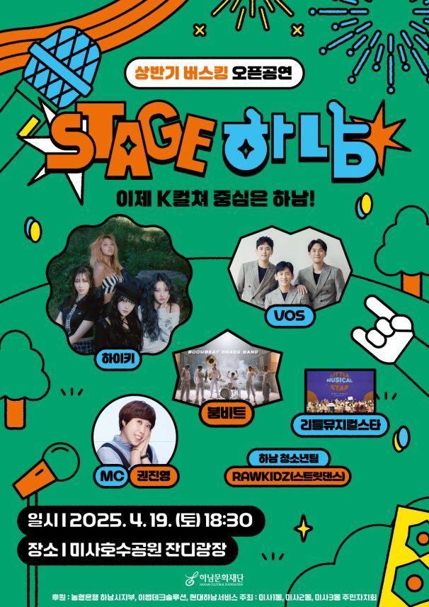 경기 하남시(시장 이현재)와 하남문화재단이 오는 19일 오후 6시 30분 미사호수공원 잔디광장에서 '2025 Stage 하남! 버스킹'의 화려한 시작을 알리는 오픈 공연을 연다고 16일 밝혔다.