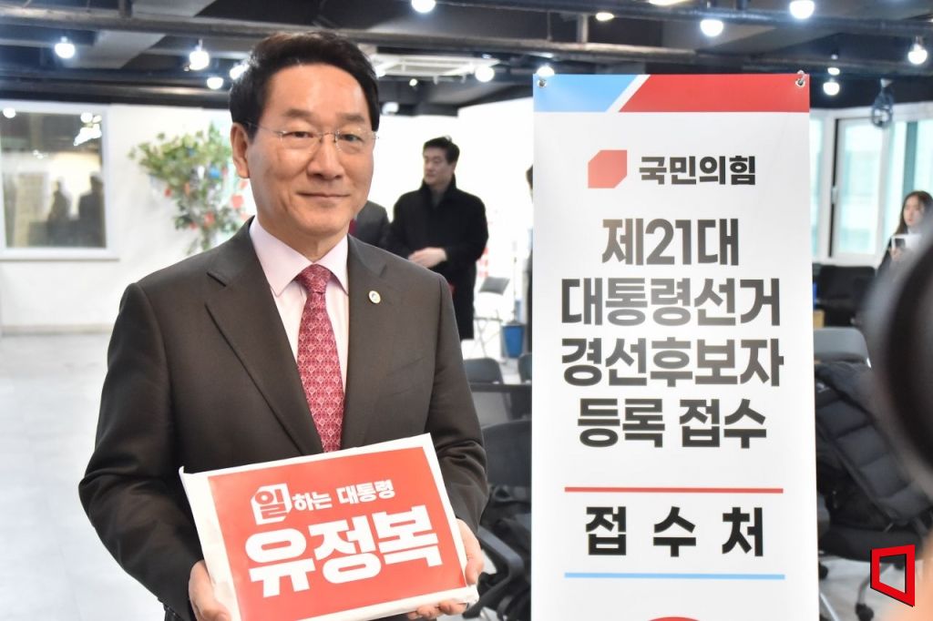 유정복 인천시장이 지난 14일 서울 영등포구 국민의힘 당사에서 제21대 대통령선거 경선 후보자 등록 접수를 하고 있다. 유정복 후보 선거캠프