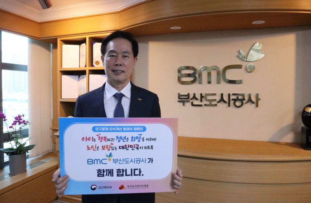 부산도시공사 신창호 사장이 16일 '인구문제 인식개선 릴레이 캠페인'에 동참하며 인구 위기 대응에 나섰다.