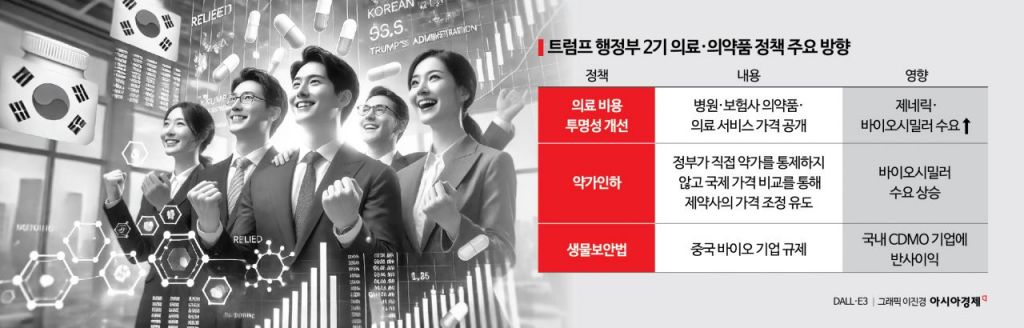 도널드 트럼프 미국 대통령이 고가 의약품에 대한 부담을 줄이기 위해 바이오시밀러(바이오의약품 복제약)를 우대하는 내용이 담긴 행정명령에 서명했다. 국내 셀트리온·삼성바이오에피스 등의 기업들이 수혜를 받을 것으로 기대된다.