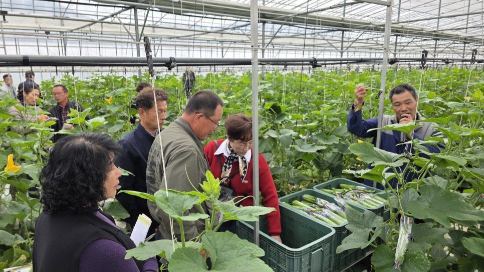 이번 견학은 애호박 주산지 농가의 선진 재배 사례를 통해 실질적인 기술을 익히고, 토양 환경 관리, 작물 세력 관리, 착과 기술 등 핵심 재배 기법을 중심으로 진행됐다. 현장에서 진행된 교육은 농업인의 눈높이에 맞춰 실용적이고 체계적인 방식으로 운영됐다.