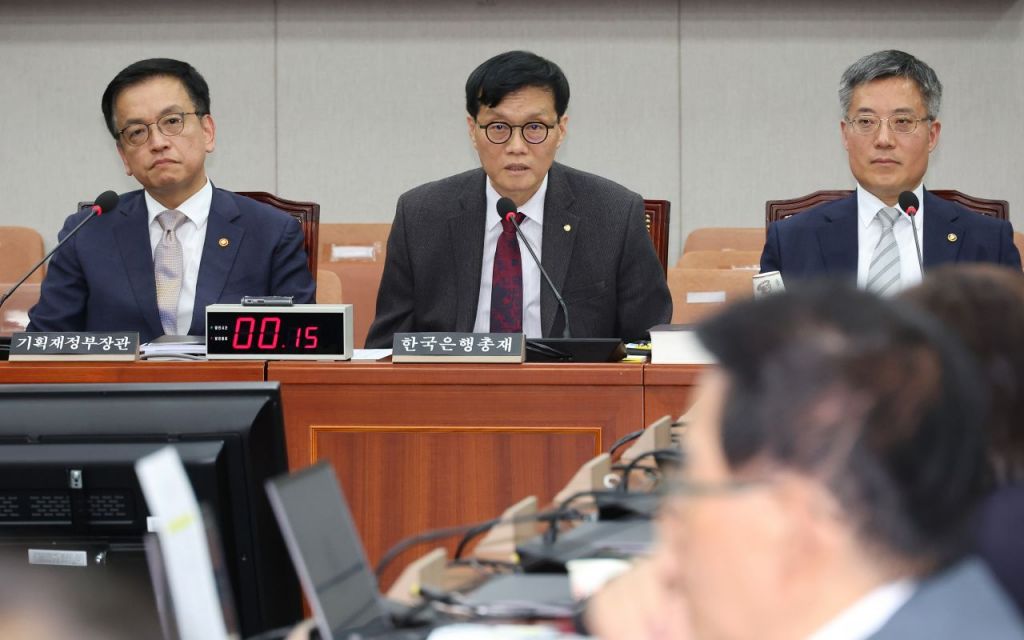 이 총재는 "내일(17일) 금융통화위원회가 있어 자세한 말씀은 드릴 수 없다"며 "2년 사이 물가 상승률이 6%까지 올라간 상황에 국민들의 피해가 있더라도 인플레이션을 잡기 위해 금리를 올렸다"고 말했다. 정 위원장이 "내일 금리 인하를 발표하는 것인가"라고 재차 묻자 이 총재는 "그런 말이 아니라 인하 사이클에 있다는 것"이라고 말했다.