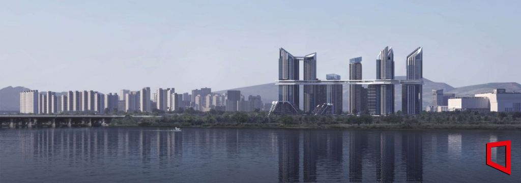 HDC현산이 제안한 용산정비창 전면1구역 '더 라인 330' 투시도. HDC현대산업개발 제공