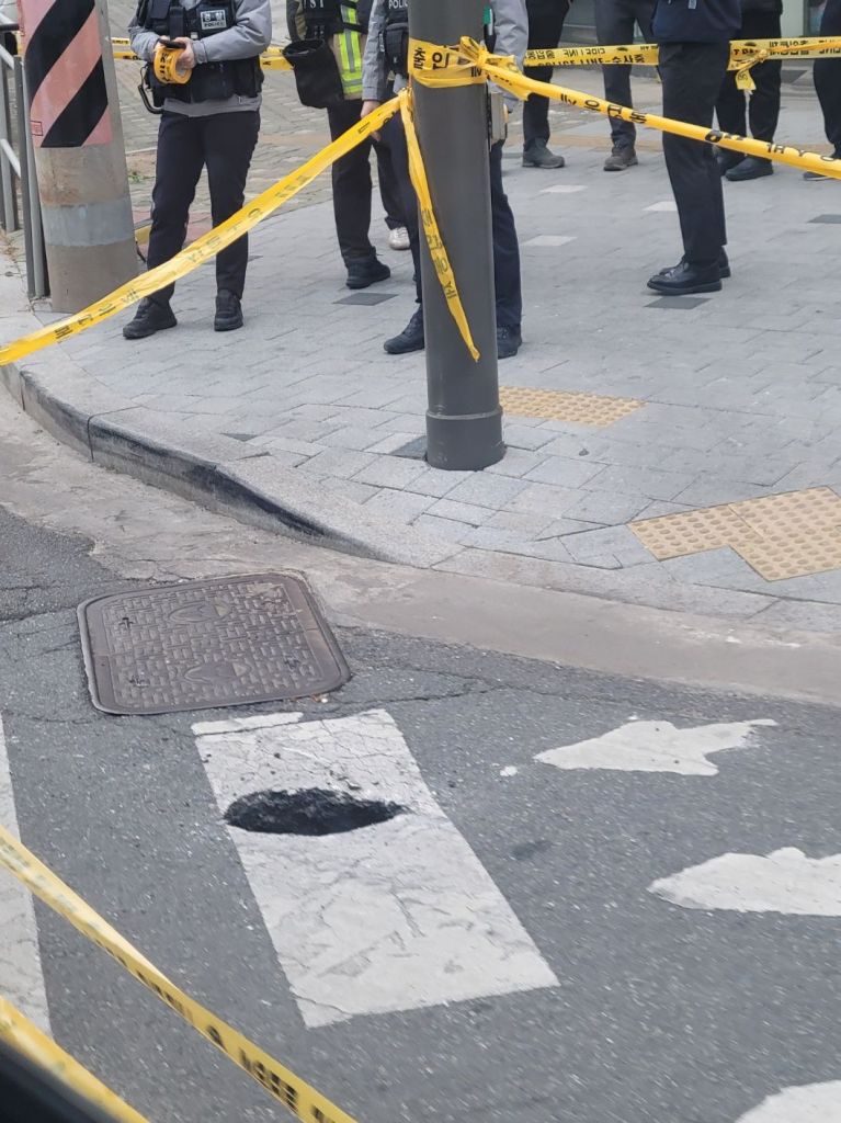 구청, 경찰, 소방당국 등에 따르면 이날 오후 4시50분께 압구정역 4번 출구 앞에서 싱크홀이 발생했다는 신고가 접수됐다.
