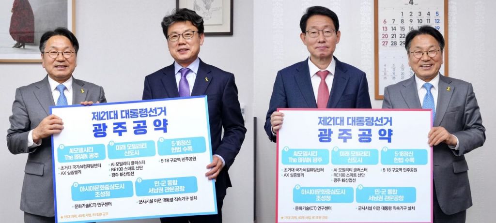 강 시장은 앞서 지난 8일 AI 모델시티-더 브레인 광주, 미래 모빌리티 신도시 등 15대 과제, 40개 사업, 81조원 규모의 정책을 담은 제21대 대통령선거 광주지역 공약 '광주의 제안'을 발표한 바 있다.