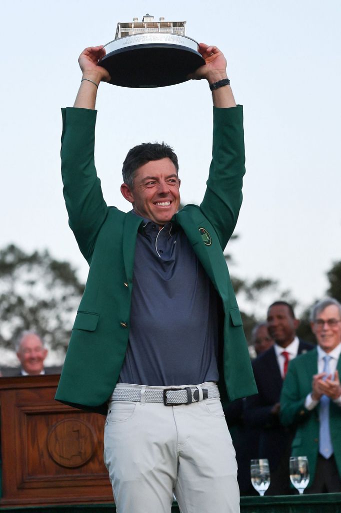 로리 매킬로이가 마스터스 우승 직후 트로피를 들고 환호하고 있다. 오거스타=AFP연합뉴스