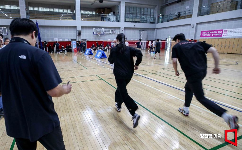 이스타항공 승무원들이 17일 서울 마포구 체력인증센터에서 첫 체력 시험 도입을 앞두고 체력 측정 및 훈련을 실시하고 있다. 이스타항공은 오는 23일부터 기내 안전 요원으로서의 역량 증진을 위해 신입 승무원들의 첫 체력 시험 전형을 치를 예정이다.