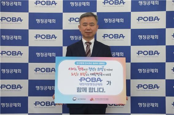 김장회 행정공제회 이사장이 보건복지부와 한국보건복지인재원이 공동 주관하는 '인구문제 개선을 위한 릴레이 캠페인' 참여 인증을 하고 있다. 행정공제회 제공