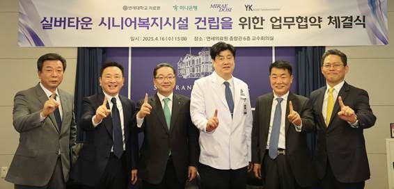 연세의료원이 16일 실버타운 시니어복지시설 건립을 위해 하나은행, MDI미래도시개발, YK자산운용과 함께 다자간 업무협약을 체결했다.