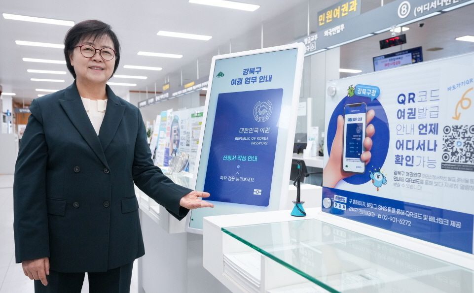 서울 강북구(구청장 이순희)가 여권 발급 절차를 보다 쉽고 명확하게 안내하기 위해 QR코드와 디지털 사이니지를 도입했다.