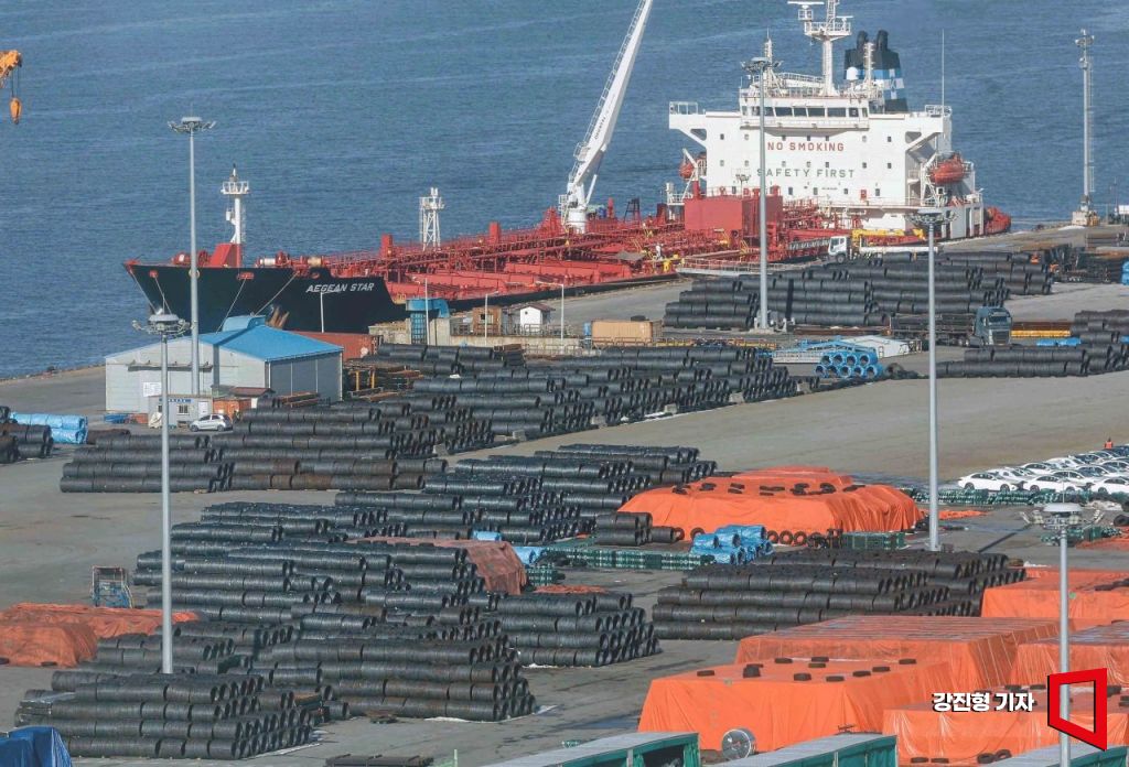 경기 평택항 수출 야적장에 철강 제품이 쌓여 있다. 강진형 기자