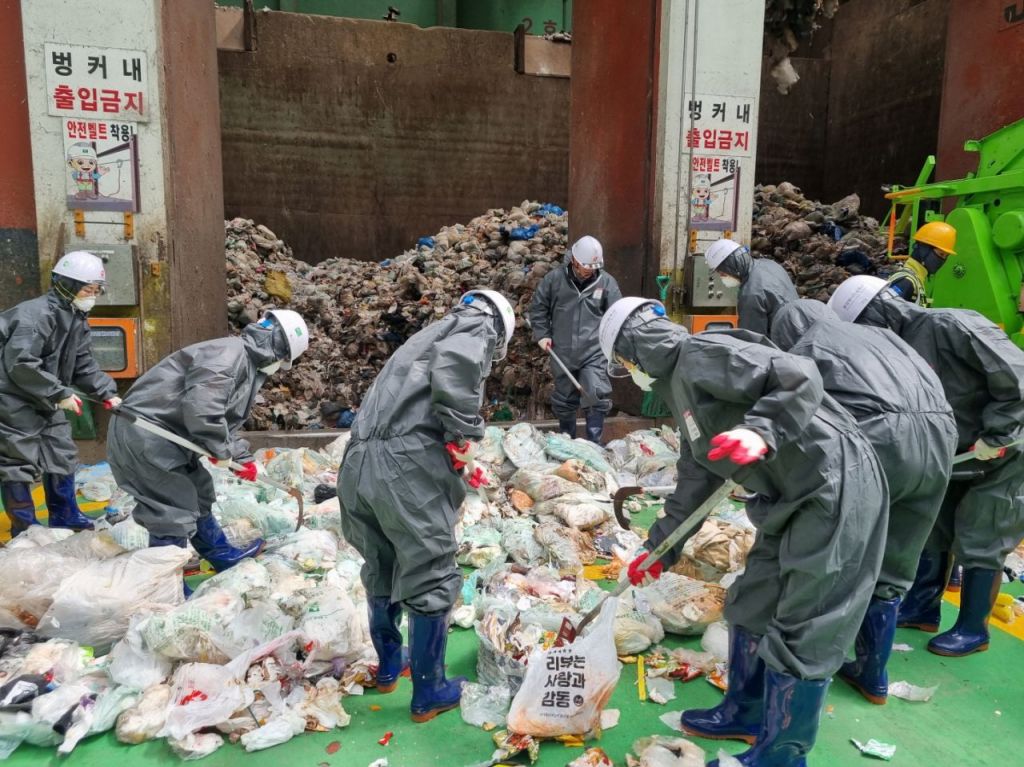 경기 수원시가 자원회수시설로 반입되는 소각용 생활폐기물을 표본검사(샘플링) 한다.