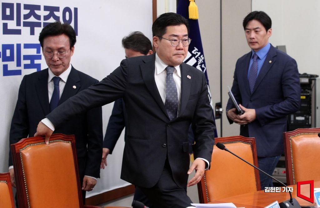박찬대 더불어민주당 대표 직무대행 겸 원내대표가 18일 국회에서 열린 최고위원회의에 참석하고 있다.