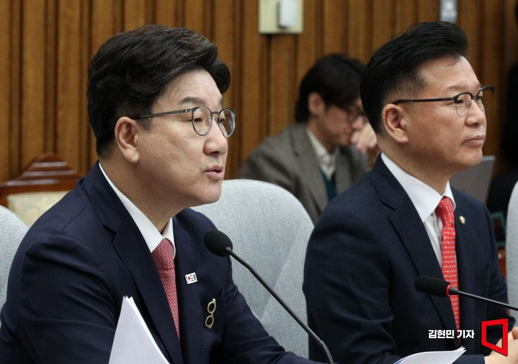 권성동 국민의힘 원내대표가 18일 국회에서 열린 원내대책회의에서 발언하고 있다. 2025.4.18 김현민 기자