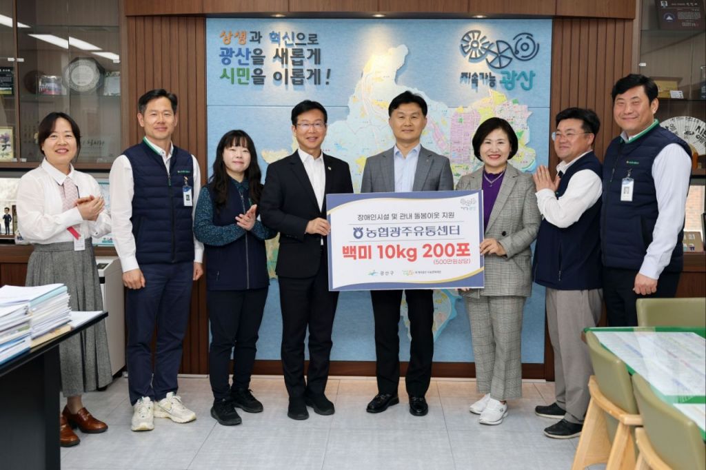 농협하나로유통 광주농수산물유통센터(사장 김태오)가 지난 17일 광주 광산구청을 방문해 백미 10kg 200포(500만원 상당)를 기탁했다. 이날 전달식은 박병규 구청장과 농협유통, 투게더광산나눔문화재단 관계자 등이 참석한 가운데 진행됐다. 기탁된 백미는 관내 장애인시설과 돌봄 이웃 등에 배분된다. 광산구 제공
