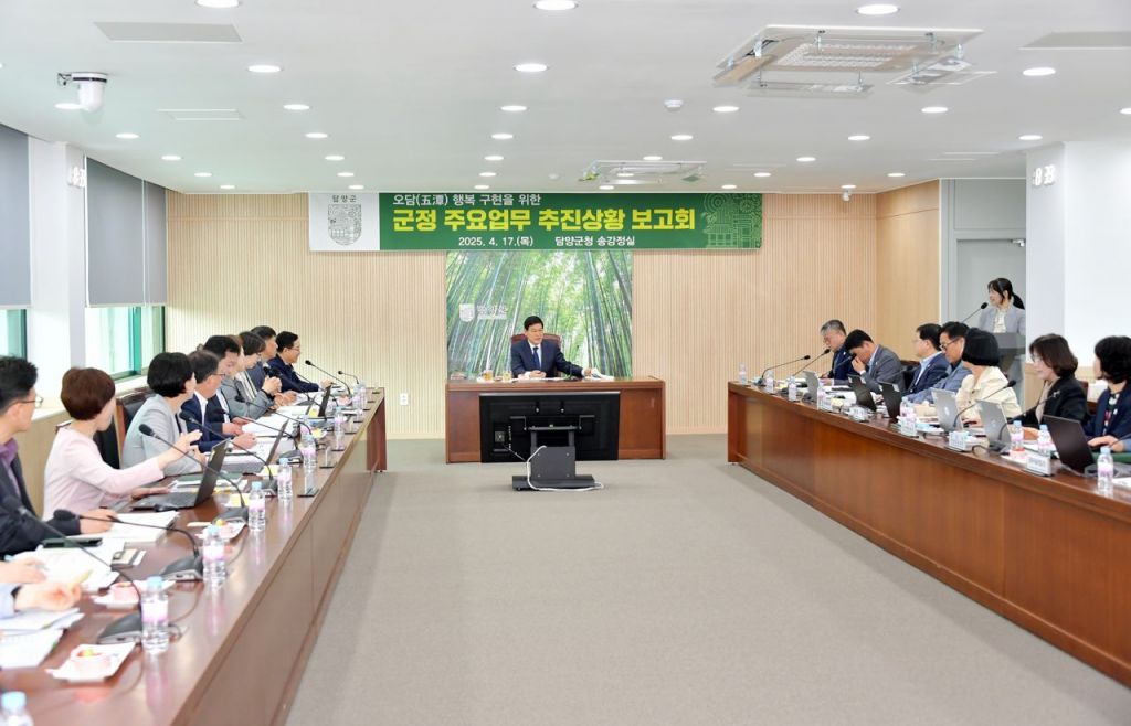 전남 담양군은 지난 17일 군청 송강정실에서 정철원 군수 취임 이후 첫 '군정 주요 업무 추진상황 보고회'를 열고, 군정 방향과 중점 추진 과제를 공유했다고 18일 밝혔다.