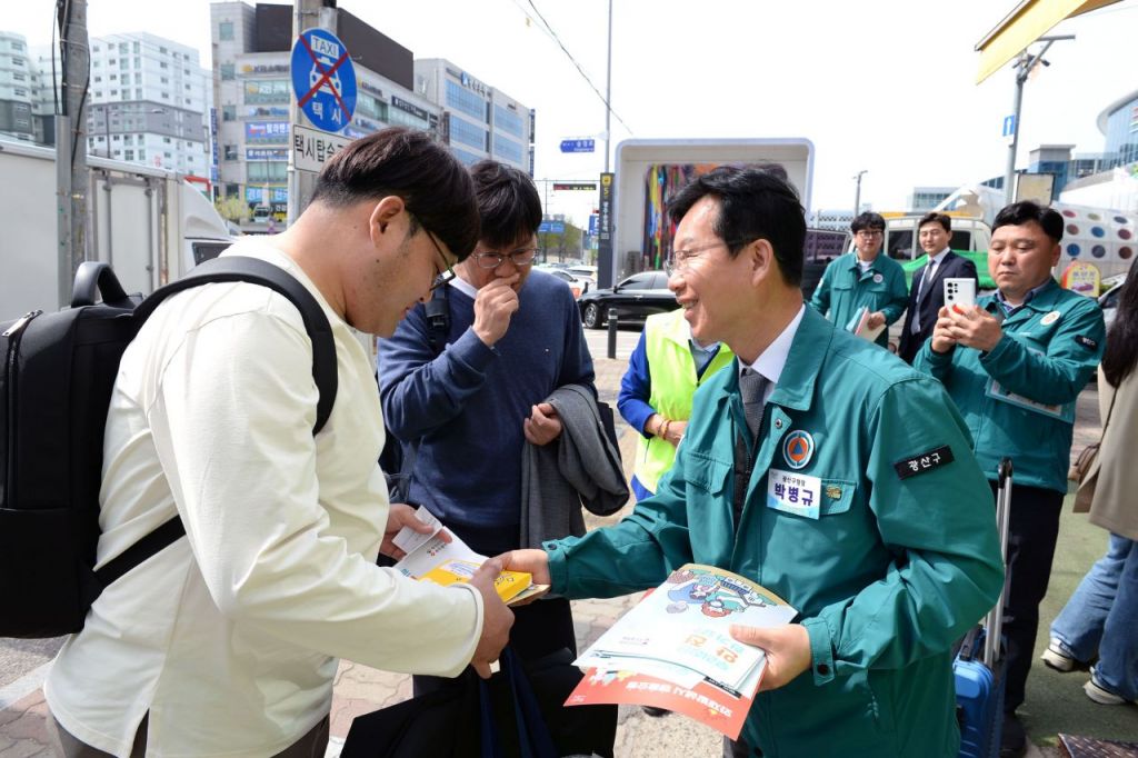 광주 광산구는 18일 '안전 점검의 날'을 맞아 광주송정역에서 화재 예방 캠페인을 진행했다. 박병규 구청장과 안전 모니터봉사단 등 200여명이 참여했으며, 송정역 인근 시장과 상가에서는 생활 안전 점검도 병행했다. 박 구청장은 "작은 위험이 큰 사고로 이어질 수 있다"며 "시민이 함께하는 안전 문화 조성에 힘쓰겠다"고 말했다. 광산구 제공