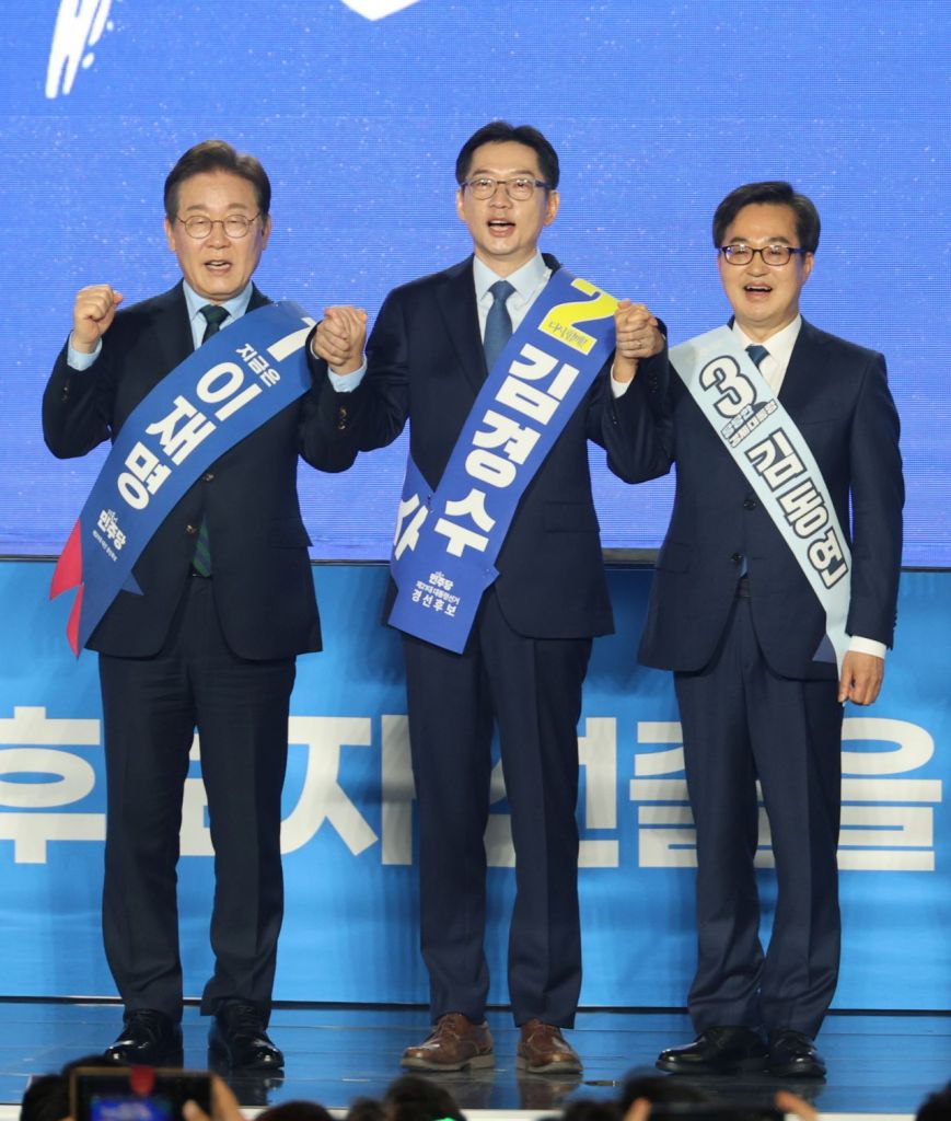 더불어민주당의 첫 순회 경선지인 충청에서 경선 후보인 이재명 전 더불어민주당 대표, 김경수 전 경남지사, 김동연 경기지사는 모두 연설을 통해 '원팀'을 강조하며 훈훈한 분위기를 연출했다.