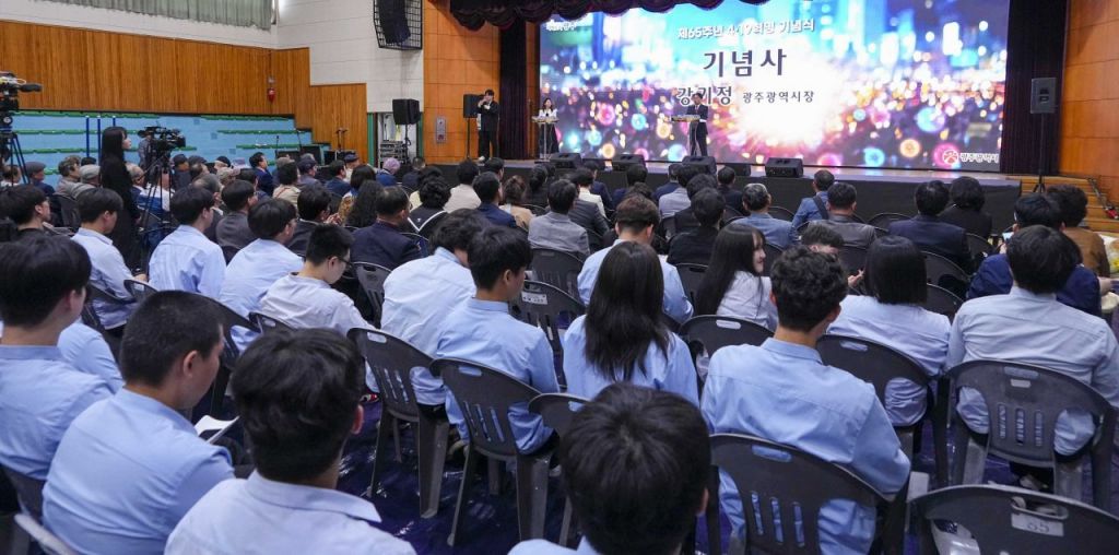 그는 "65년 전 광주공업고 학생들은 금남로에 집결해 4·19혁명의 한복판에 서 있었고, 그 소년·소녀들은 80년 5월의 수많은 동호가 됐고, 오늘날에는 계엄과 탄핵 정국에서 응원봉을 들고 빛을 밝힌 키세스단이 됐다"며 "이처럼 많은 소년·소녀들이 오늘의 4·19정신을 이어가고 있다. 지금의 대한민국은 그들의 희생과 헌신, 참여로 이뤄져 있다. 우리는 내년에도 미래세대가 있는 혁명의 교정에서 4·19정신을 기릴 것이다"고 말했다.