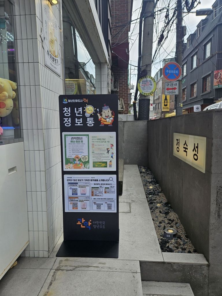 관악구(구청장 박준희)가 대표 지역 상권인 샤로수길 일대에 청년들이 구정을 손쉽게 접할 수 있도록 오프라인 게시대 '청년정보통'을 설치했다.