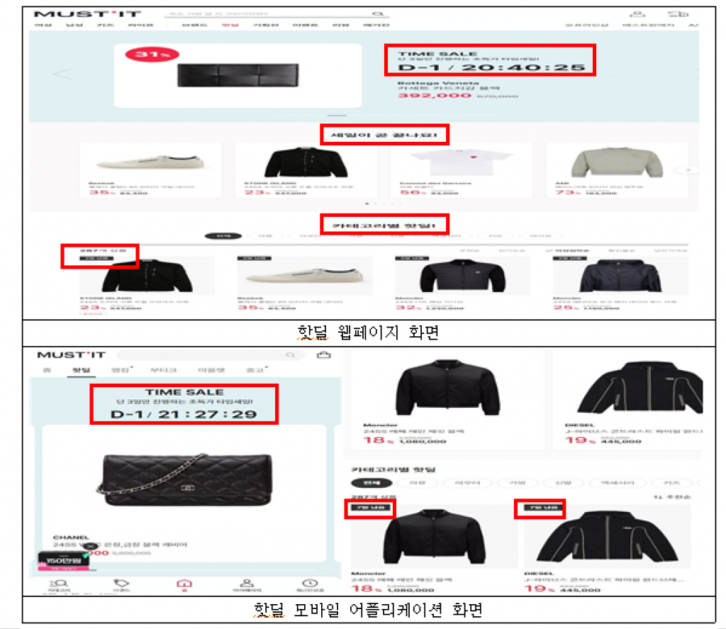 공정위에 따르면 머스트잇은 2021년 1월부터 2024년 7월까지 옷, 가방, 신발 등 상품을 상시 할인해 판매하면서 '단 하루만 진행하는 초특가 타임세일', '세일이 곧 끝나요' 등의 표현을 사용해 홍보했다.