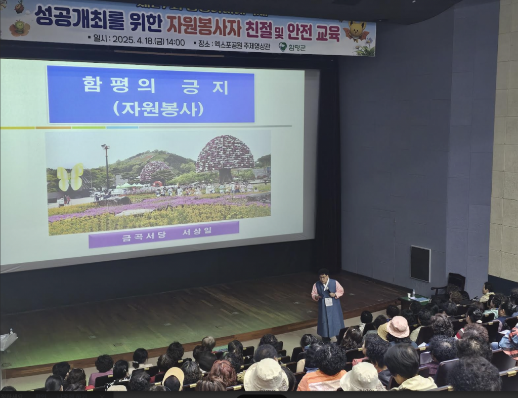 교육은 나비축제 현장을 찾는 관광객들에게 안전하고 쾌적한 관람 서비스를 제공하기 위해 마련됐으며, 친절 교육을 비롯해 안전교육, 축제 프로그램 안내 순으로 구성됐다. 이날 교육에는 금곡서당 서상일 훈장이 강사로 나서 '함평의 긍지'를 주제로 강연을 펼쳤다.